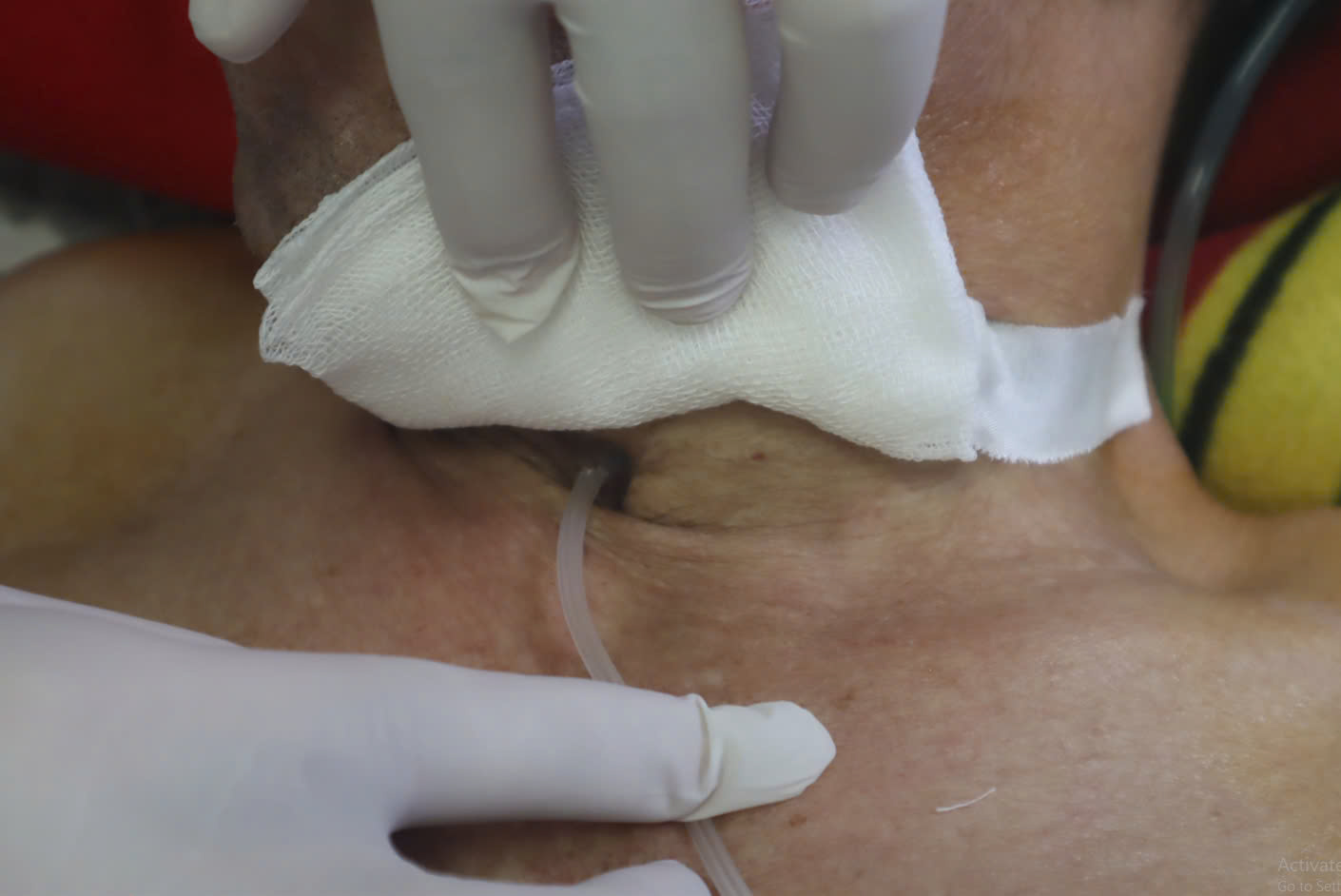 Bệnh nhân được đưa đến điều trị tại TTYT huyện Tiên Du khi ống mở khí quản chưa được rút