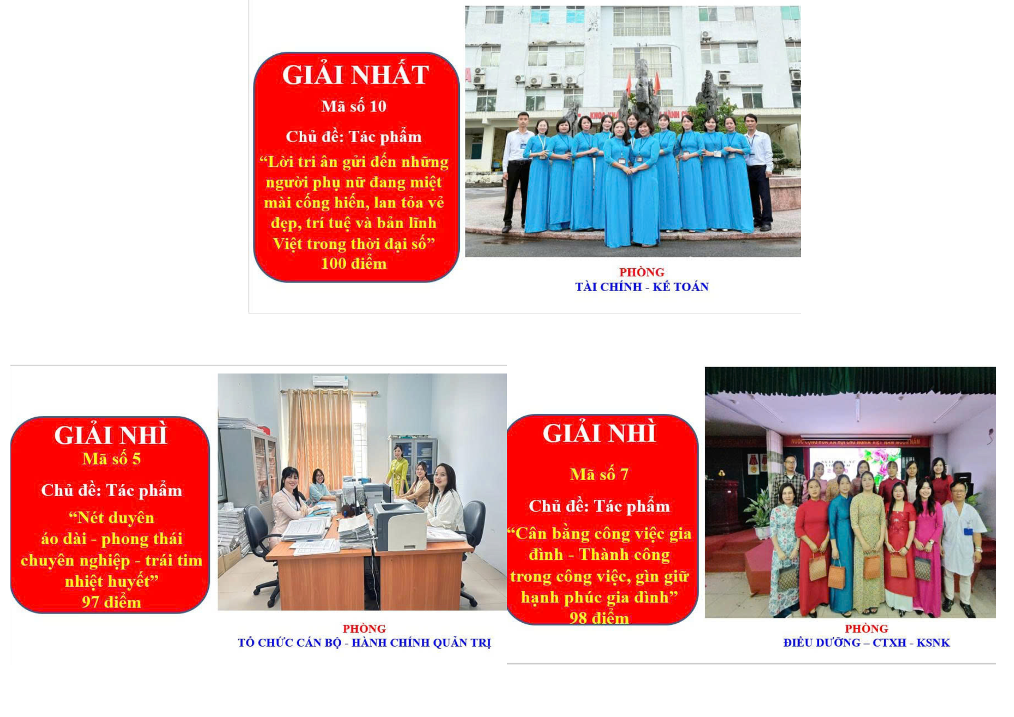 - 02 Giải Nhì: Mã số 05_Phòng Tổ chức cán bộ-HCQT và Mã số 07_Phòng Điều dưỡng-CTXH-KSNK